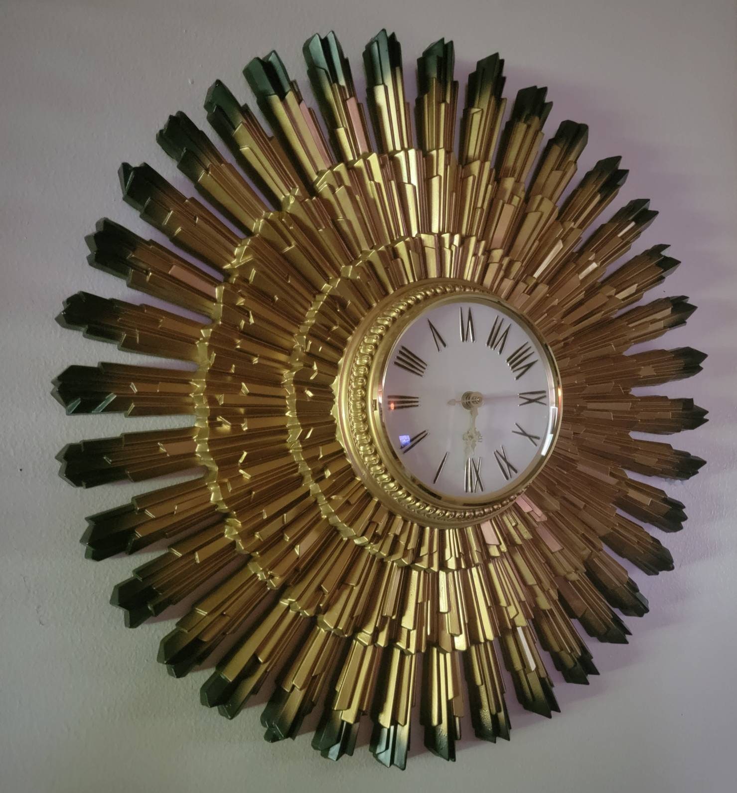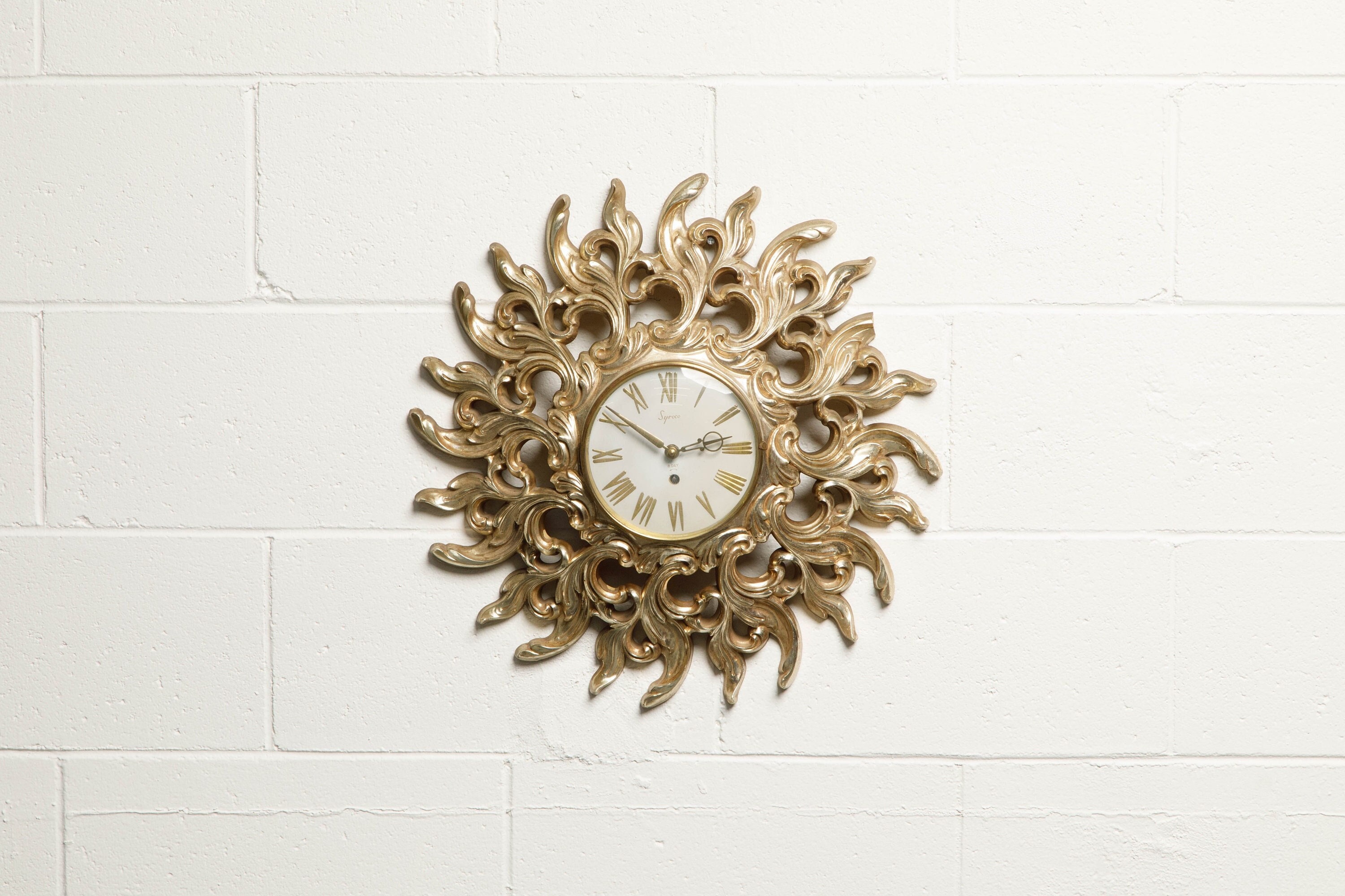 Vintage Syroco Gold Ornate Starburst Battery Wall Clock Exibit Collection
