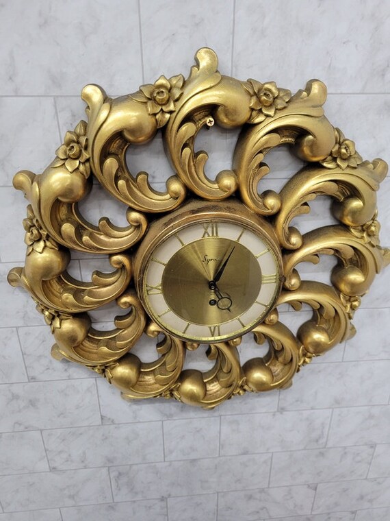 Vintage Syroco Wall Clock Gold Ornate Chunky Usa Made Etsy