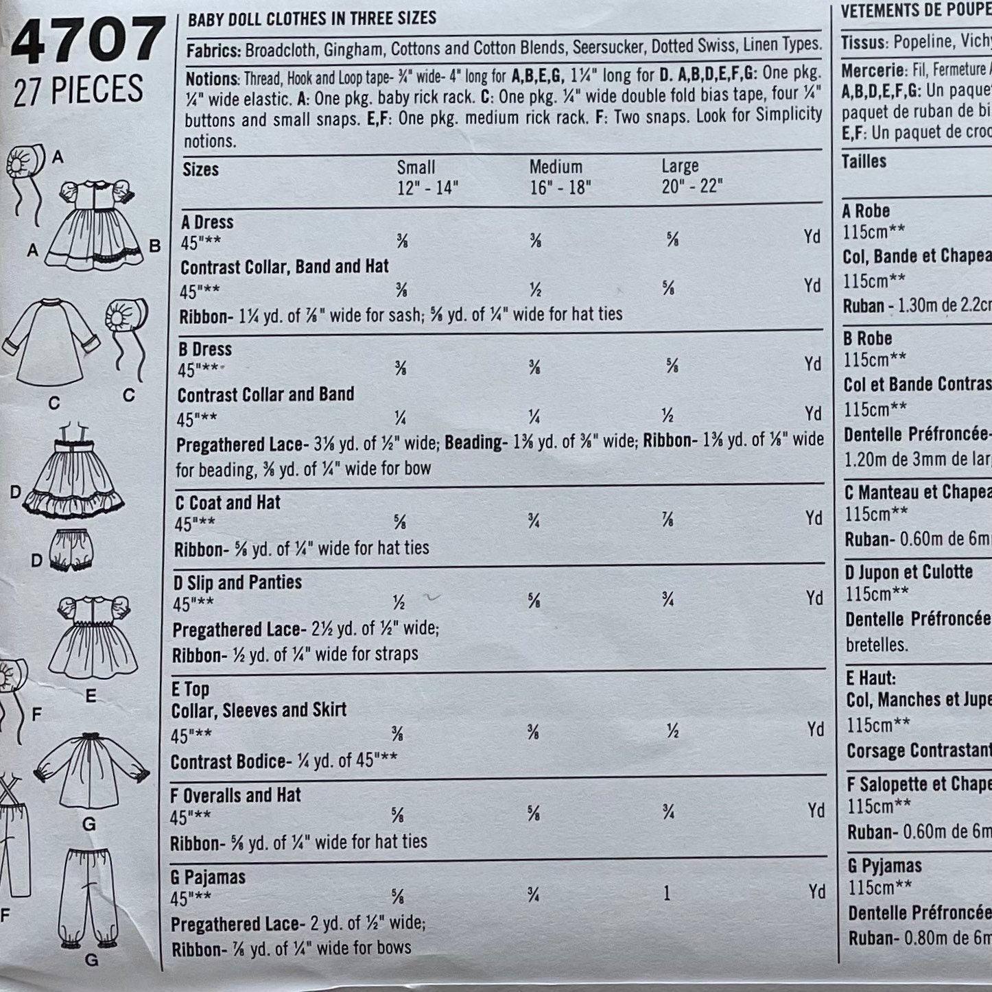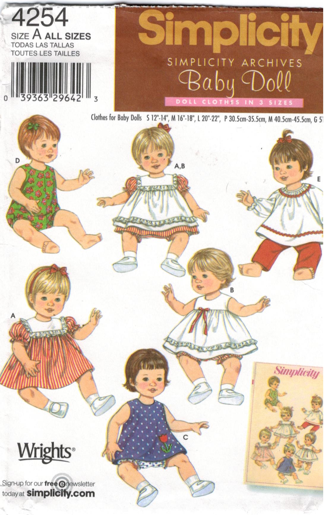 Simplicity Pattern 4254 Baby Doll Wardrobe Doll Sizes Small Through Large Sewing Pattern Heaven